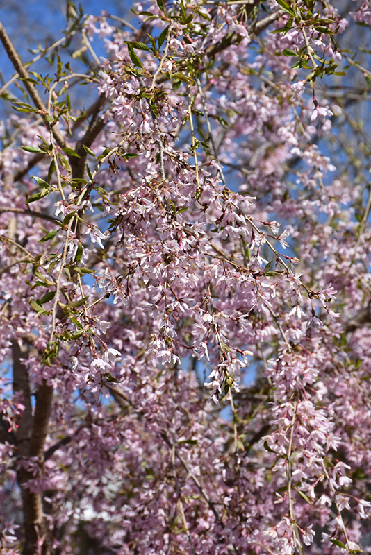 Pink Snow Showers™ Weeping Cherry will grow to be about 25 feet tall at maturity, with a spread of 20 feet. It has a low canopy with a typical clearance of 2 feet from the ground, and is suitable for planting under power lines. It grows at a medium rate, and under ideal conditions can be expected to live for 50 years or more.