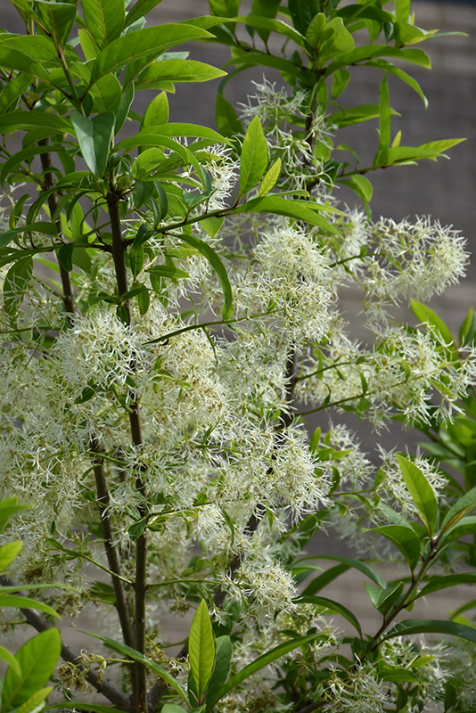 Spring Fleecing Fringetree is clothed in stunning panicles of fragrant white strap-like flowers rising above the foliage in late spring. It has forest green deciduous foliage. The glossy narrow leaves turn yellow in fall. It produces navy blue berries from early to late fall. The peeling gray bark adds an interesting dimension to the landscape.