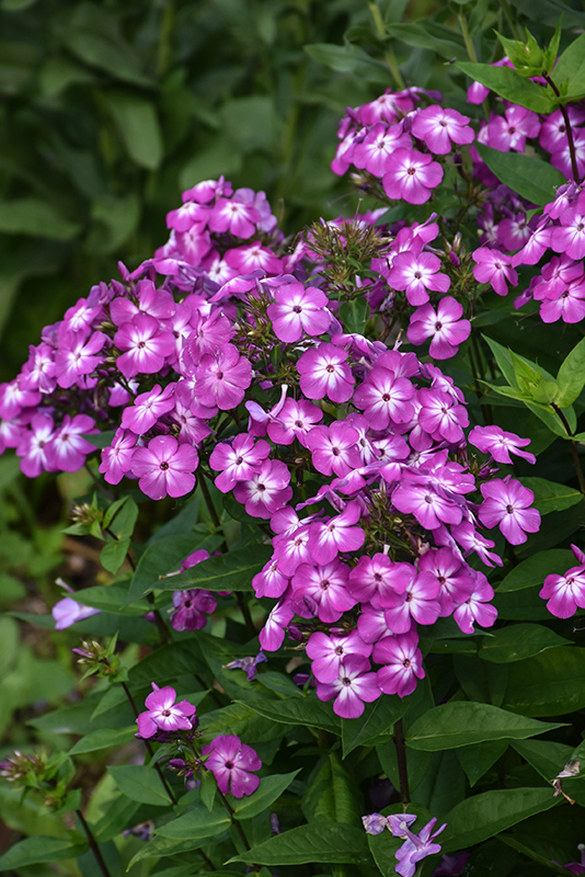 Flame Purple Eye Garden Phlox features bold fragrant conical purple star-shaped flowers with a white flare at the ends of the stems from early summer to early fall. The flowers are excellent for cutting. Its narrow leaves remain emerald green in color throughout the season.