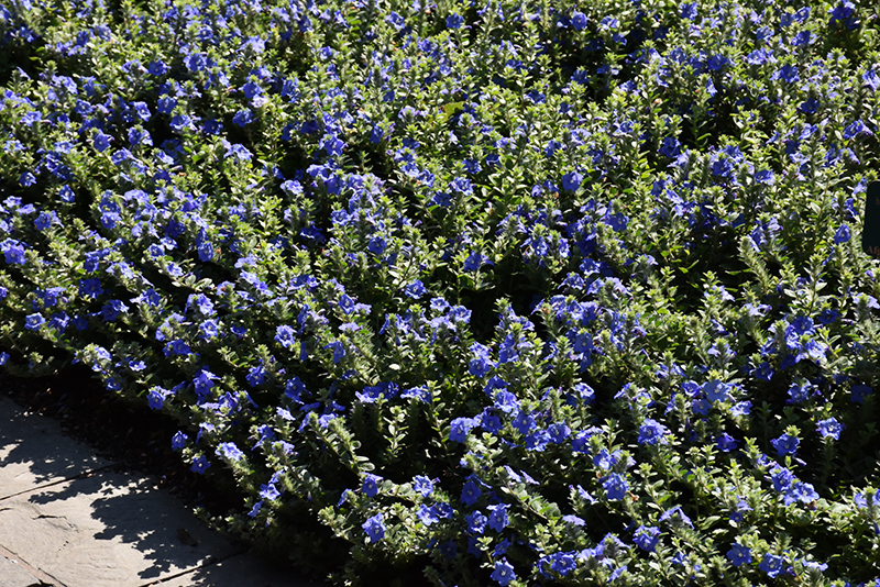This grayish-leafed variety produces dazzling true-blue flowers all season, without deadheading; heat and drought tolerant once established; a compact mounding and trailing habit great for containers, hanging baskets, and border fronts
