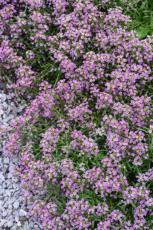 Stream™ Raspberry Sweet Alyssum will grow to be about 8 inches tall at maturity, with a spread of 3 feet. When grown in masses or used as a bedding plant, individual plants should be spaced approximately 30 inches apart. Its foliage tends to remain low and dense right to the ground. This fast-growing annual will normally live for one full growing season, needing replacement the following year.