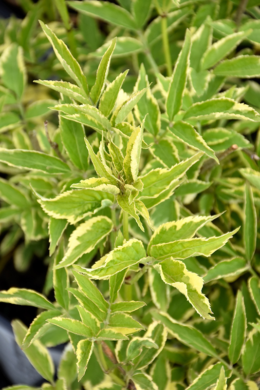 Instant Karma® Elder features showy clusters of fragrant creamy white flowers held atop the branches from late spring to early summer. It has attractive forest green foliage edged in white with hints of grayish green. The compound leaves are highly ornamental and turn yellow in fall. The deep purple fruits with black overtones are held in clusters from mid to late summer.