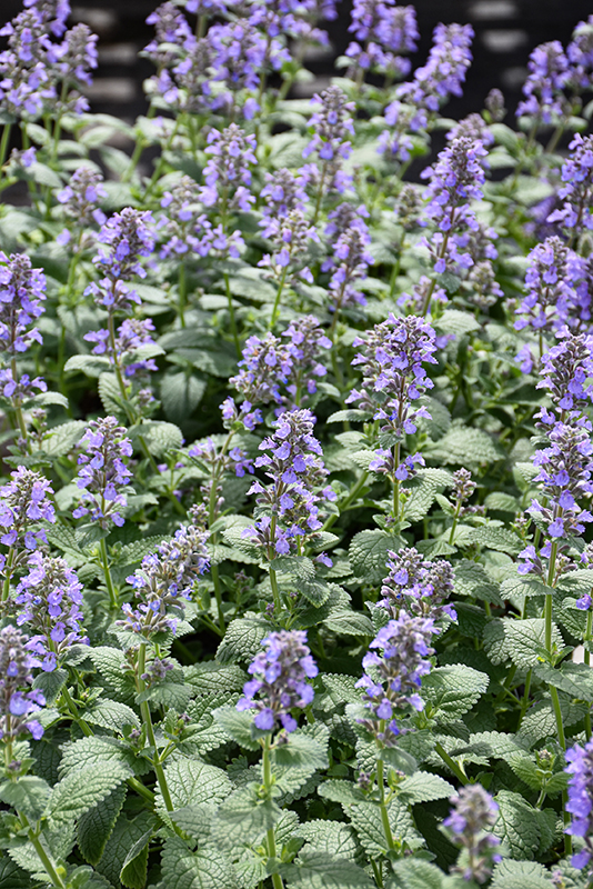 Whispurr™ Blue Catmint will grow to be about 24 inches tall at maturity, with a spread of 22 inches. When grown in masses or used as a bedding plant, individual plants should be spaced approximately 28 inches apart. Its foliage tends to remain dense right to the ground, not requiring facer plants in front. It grows at a fast rate, and under ideal conditions can be expected to live for approximately 10 years. As an herbaceous perennial, this plant will usually die back to the crown each winter, and will regrow from the base each spring. Be careful not to disturb the crown in late winter when it may not be readily seen!