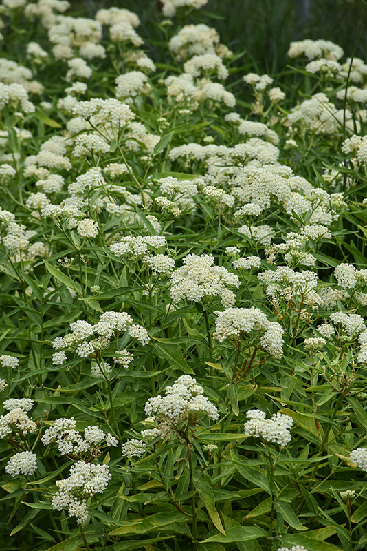 A wonderful selection for attracting butterflies to garden beds and rain gardens; this upright selection features clusters of white fragrant flowers and green narrow foliage; a compact variety that is easy to grow, needing little to no maintenance