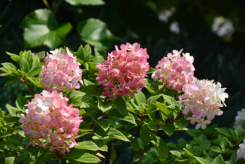 This compact shrub with strong stems serves up color all season long; large, conical, lime green flower heads mature from the bottom up, to shades of white, light pink, then Hawaiian Punch red; the colors will mix on the same plant as it reblooms
