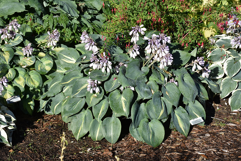 Touch Of Class Hosta features dainty spikes of lavender bell-shaped flowers rising above the foliage in mid summer. Its attractive textured heart-shaped leaves remain blue in color with prominent gold stripes throughout the season.
