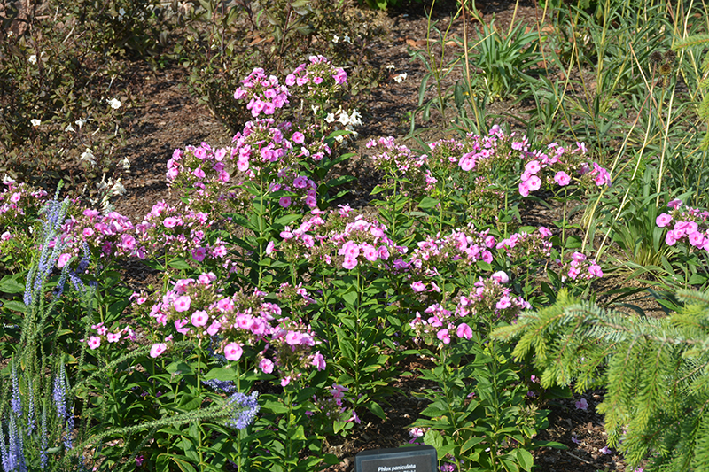 This variety features large, well rounded panicles of bubblegum pink flowers with dark pink eyes; suitable for containers or filling out the middle of borders; excellent mildew resistance