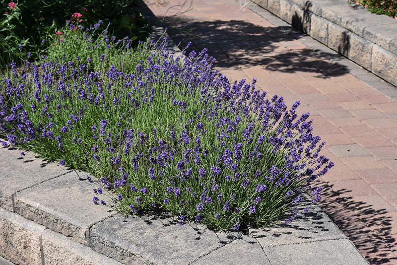 Munstead Lavender will grow to be about 16 inches tall at maturity, with a spread of 18 inches. It tends to fill out right to the ground and therefore doesn't necessarily require facer plants in front. It grows at a slow rate, and under ideal conditions can be expected to live for approximately 10 years.